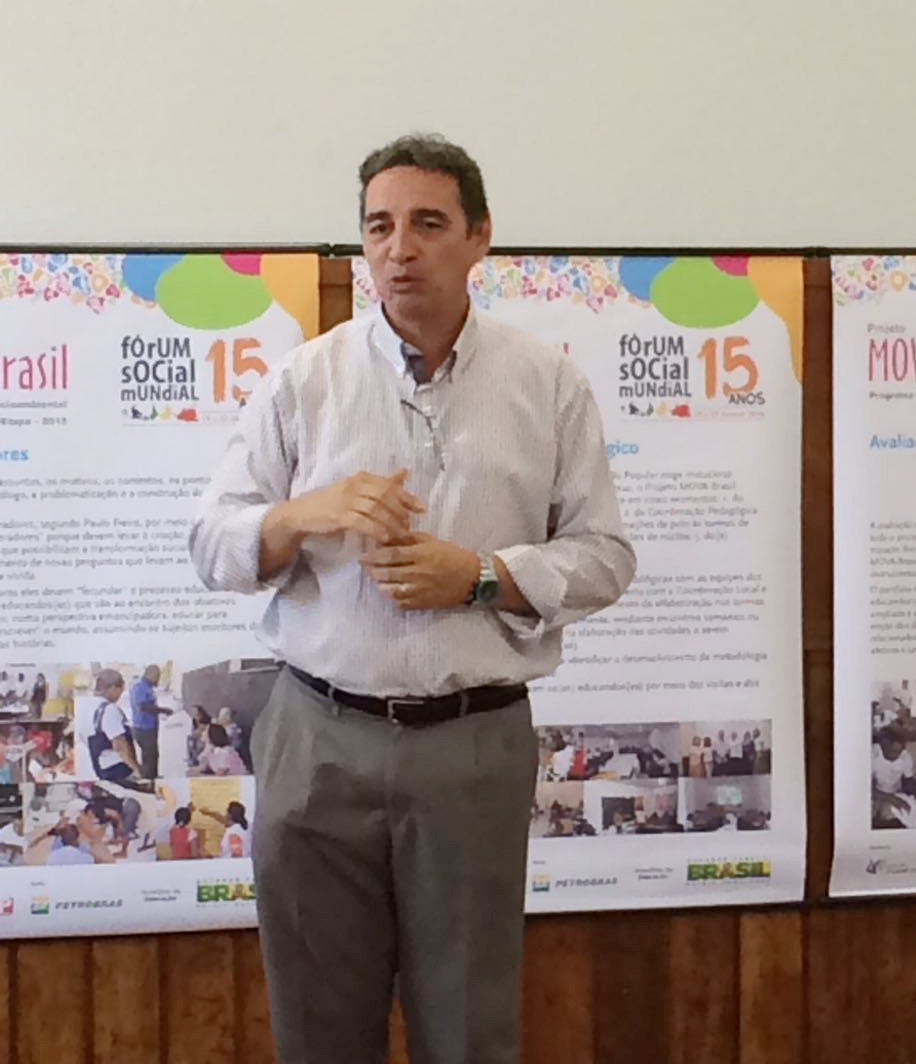 O representante da Petrobras, José Barbosa, afirmou que não há outro jeito de construir uma sociedade melhor se não for de forma coletiva. “A Petrobras é resultado da mobilização da sociedade brasileira, como estamos vendo aqui neste Fórum, pessoas reunidas e sonhando com um mundo melhor. A Petrobras é uma empresa diferente pelo seu compromisso e responsabilidade social, que só veio se fortalecer após o Governo Lula.” Informou que, a partir de 2003, um conjunto de projetos e programas que buscavam atender aos anseios sociais foram implementados na Petrobras. Na área social, cultural e ambiental foram muitos investimentos ao longo dos últimos anos, com muitas parcerias firmadas e nesta caminhada a Petrobras buscou integrar as ações no Programa Socioambiental, que está em vigência. “Os projetos não são da Petrobras, são da sociedade, nós apenas patrocinamos. A utopia é o que nos conduz. Estamos vivendo um momento de crise, mas olhar esta história [12 anos de MOVA-Brasil, nos 15 anos do Fórum] aponta que temos motivos para comemorar nossas conquistas e continuar nos organizando para a transformação e inclusão das pessoas com os interesses coletivos, inclusive dentro da empresa, para superar a lógica cartesiana”.